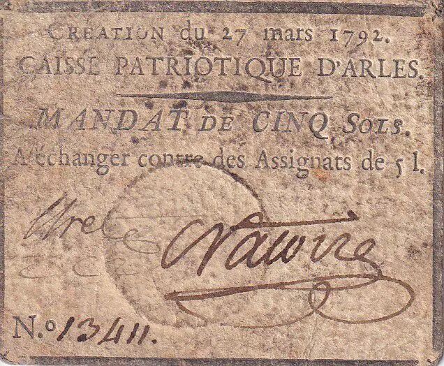 Billet France 5 Sous - Bouches-du-Rhône - Arles - 1792 - TTB