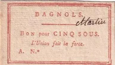 Home > > France 5 Sous - Gard - Bagnols - Letter A - 1791