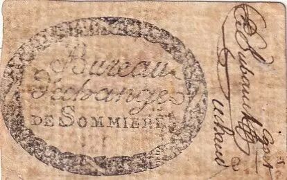 Accueil > Archivage > archivage-Billets Français > France 5 Sous - Gard - Bureau d'échange de Sommières - 1791