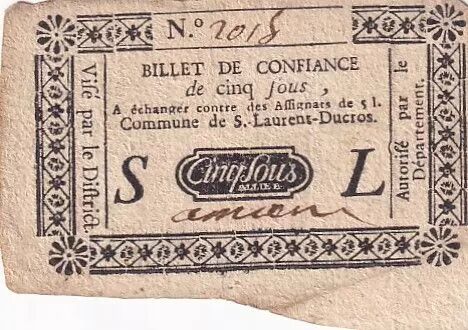 Banknote France 5 Sous - Hautes-Alpes - Saint Laurent Ducros - 1792