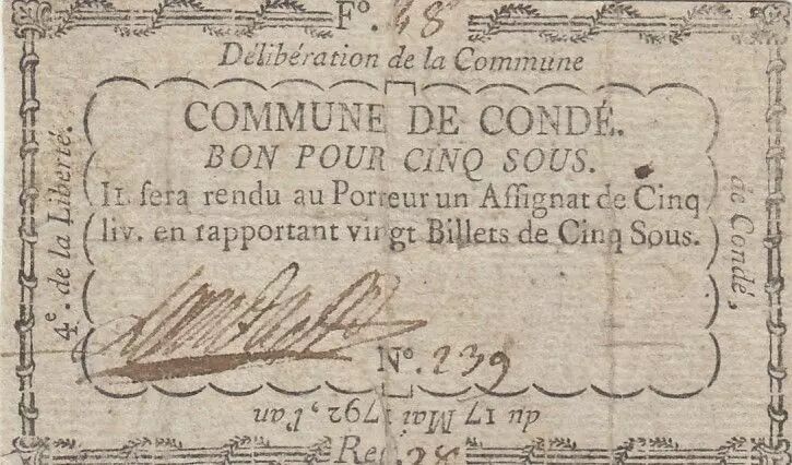 Banknote France 5 sous - Indre - Municipality of Condé - 1792