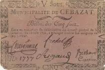 Banknote France 5 sous - Puy de dôme - Municipality of Cebazat - 1792
