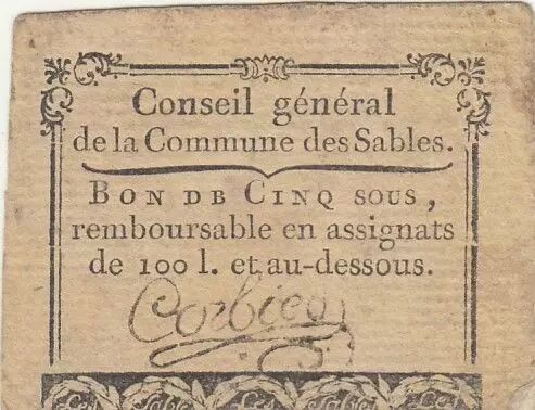 Banknote France 5 sous - Vendée - General council of Les Sables-d'Olonne - 1792