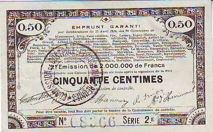 Banknote France 50 cent. 70 communes
