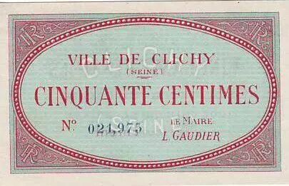 Banknote France 50 cent. Clichy
