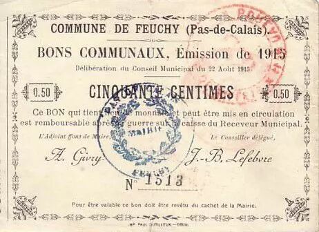 Les Billets des Communes et des Villes (Pir. 62.598)