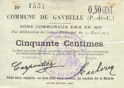 Banknote France 50 cent. Gavrelle