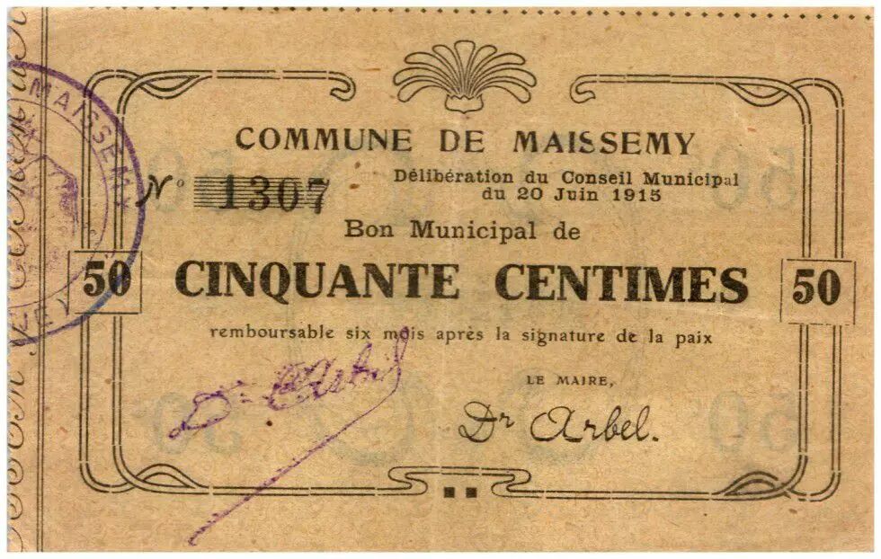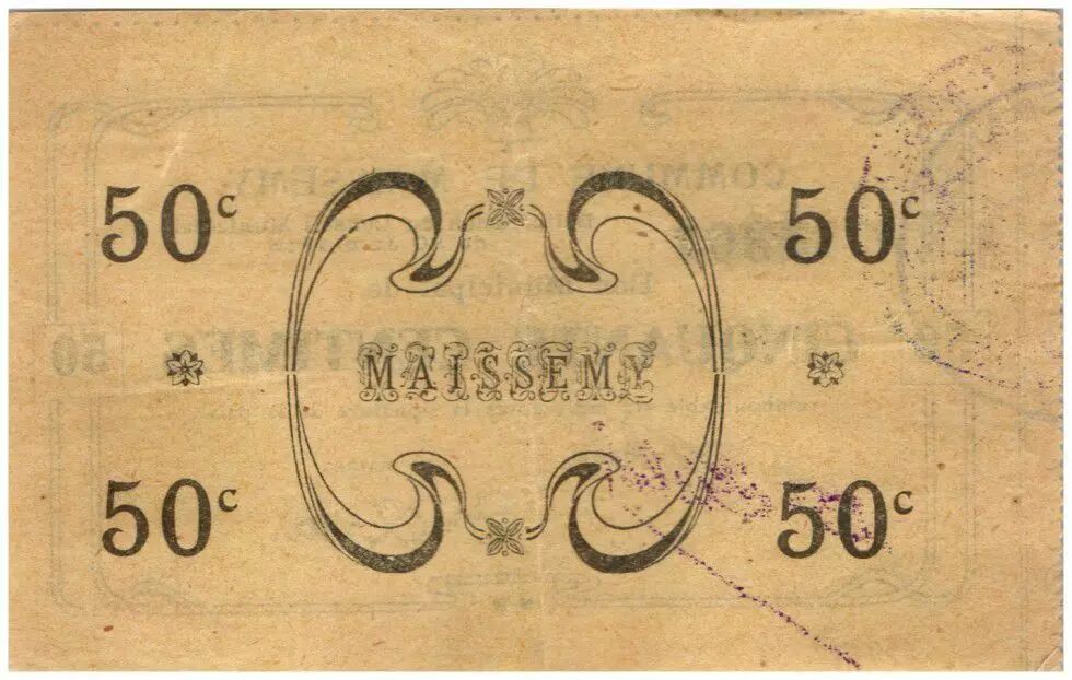Banknote France 50 cent. Maissemy City - N1307 - 1915