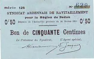 Banknote France 50 cent. Sedan Synd.de ravitaillement