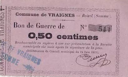 Banknote France 50 cent. Vraignes Bon de guerre