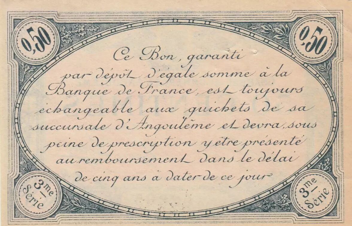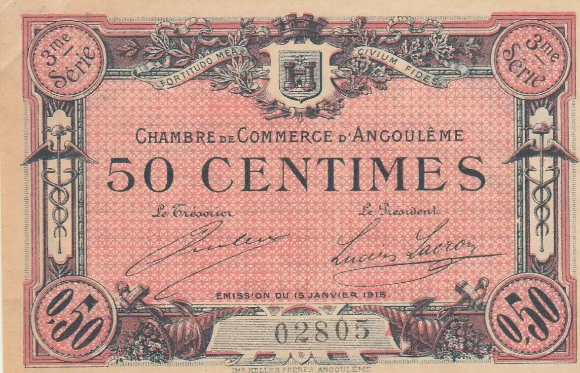 Accueil > Billets Français > Billets de Nécessités (1789-1945) > 1914-1925 Chambre de Commerce > France 50 Centimes - Angoulême - Chambre de Commerce - 15-02-1915 - Troisième Série