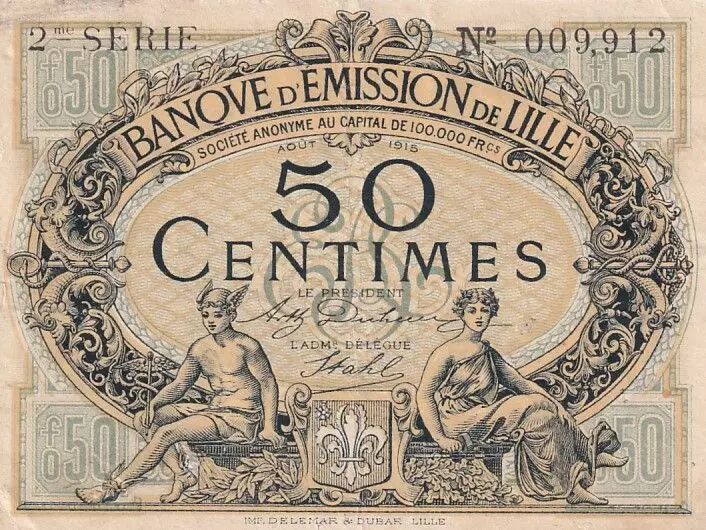 Accueil > Billets Français > Billets de Nécessités (1789-1945) > Bons de villes et de communes 1914-1925 > France 50 Centimes - Banque d'émission - Lille - 08-1915 - 2ème série