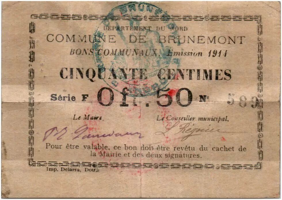 Banknote France 50 Centimes Brunemont City - 1914
