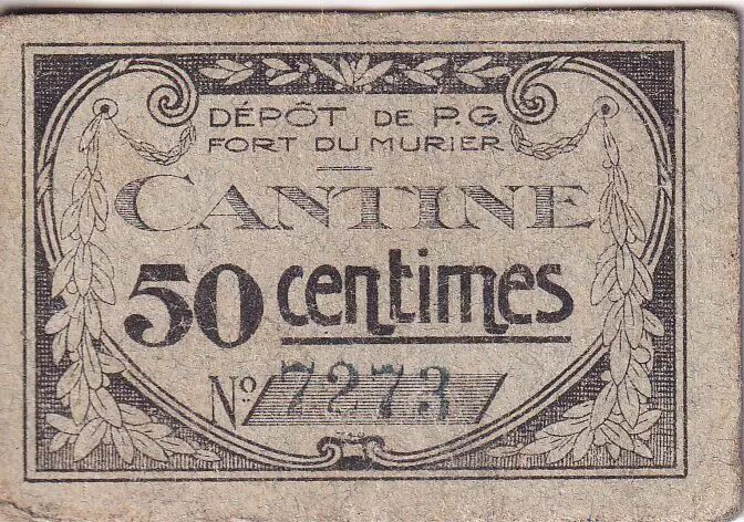 Banknote France 50 centimes - Cantine - Dépôt de prisonniers de guerre Fort du Murier