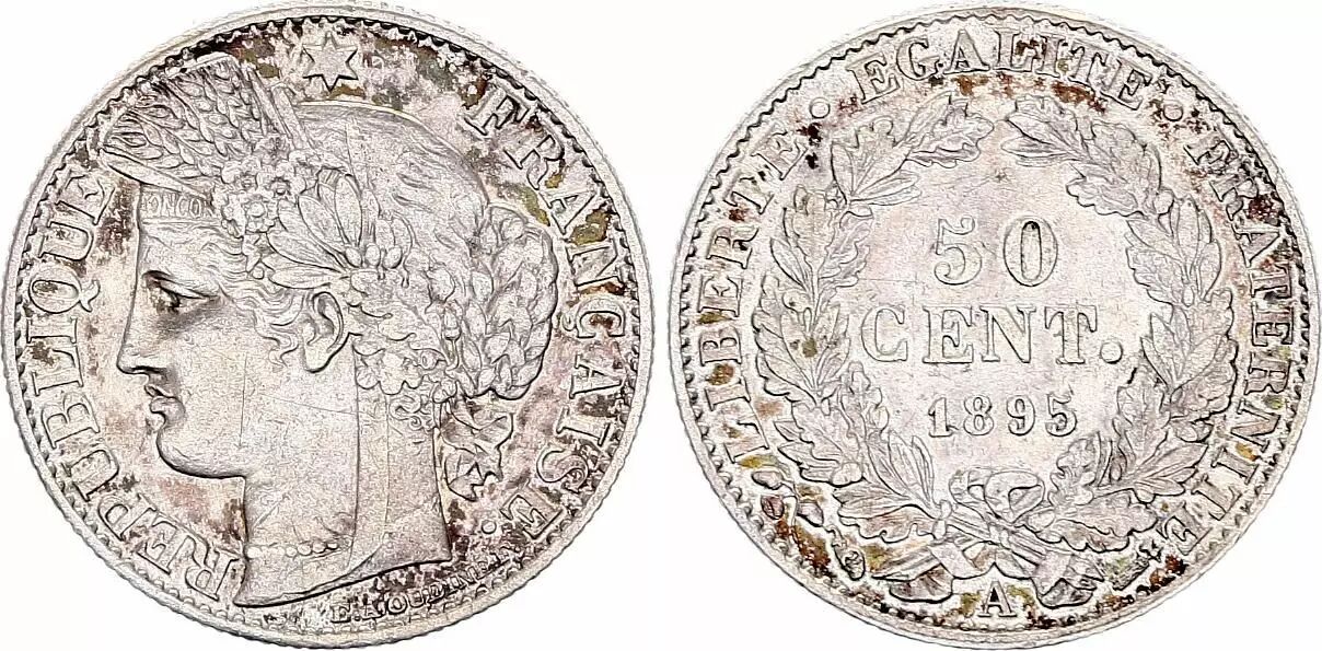 Pièce France 50 Centimes Cérès - 1895 A Paris - Argent