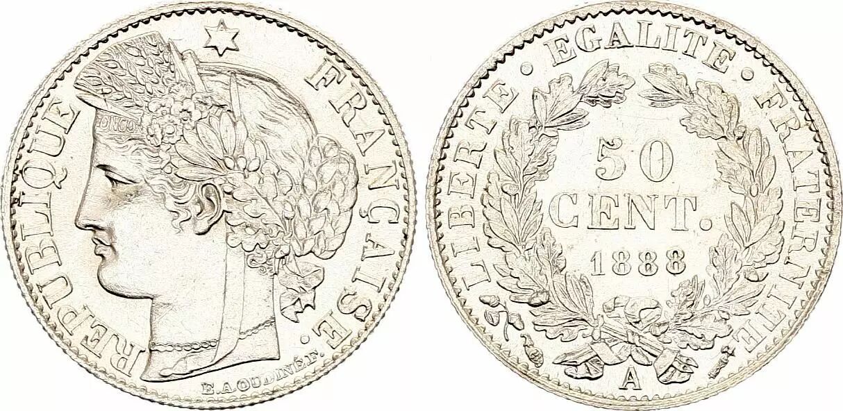 Coin France 50 Centimes Ceres - IIIème République - 1888 A Paris