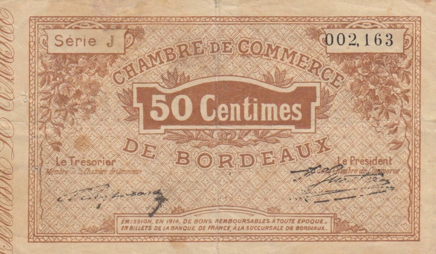 Banknote France 50 centimes - Chamber of Commerce - Bordeaux - 1914