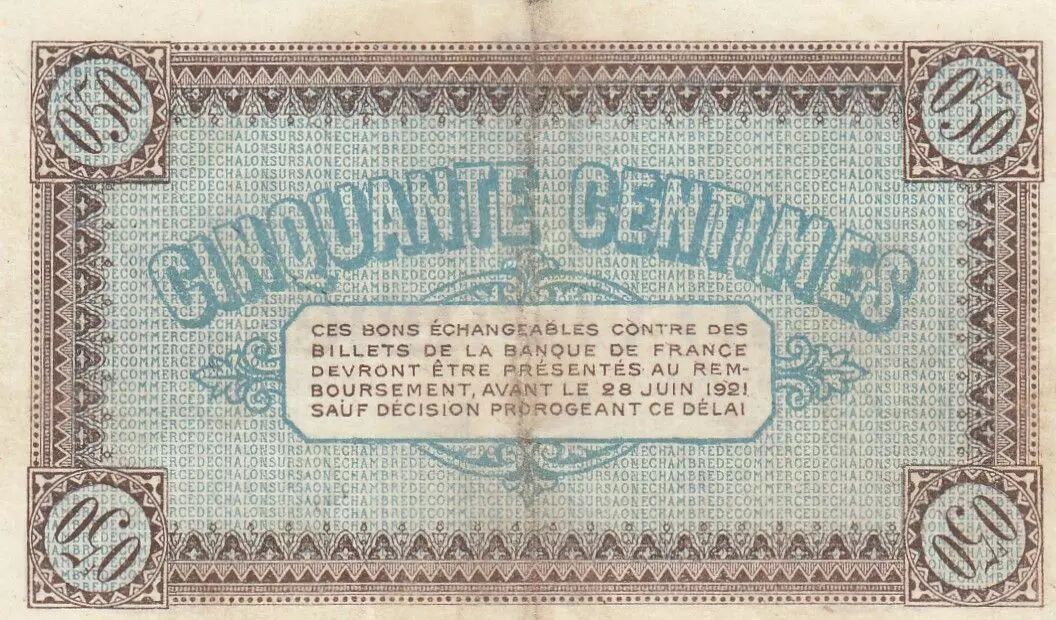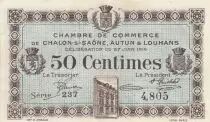 Le billet de 50 centimes émis par la Chambre de Commerce d'Autun et Louhans, daté du 27 juin 1916, représente une forme de monnaie de nécessité émise en France durant la Première Guerre mondiale. Ces billets étaient souvent produits localement pour pallier le manque de monnaieDivision administrative des communes dans le contexte économique de guerre.