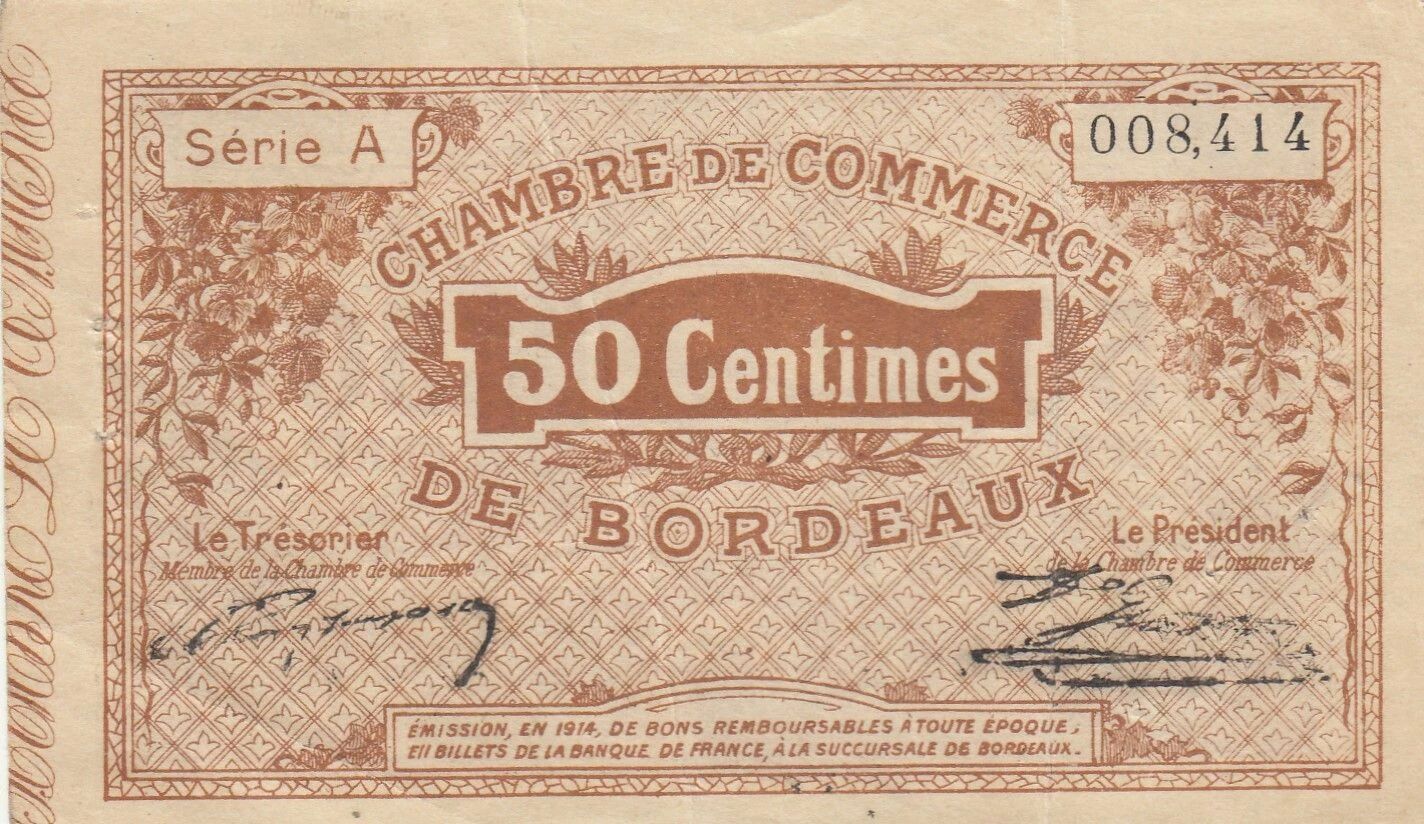Billet France 50 centimes - Chambre de Commerce - Bordeaux - 1914