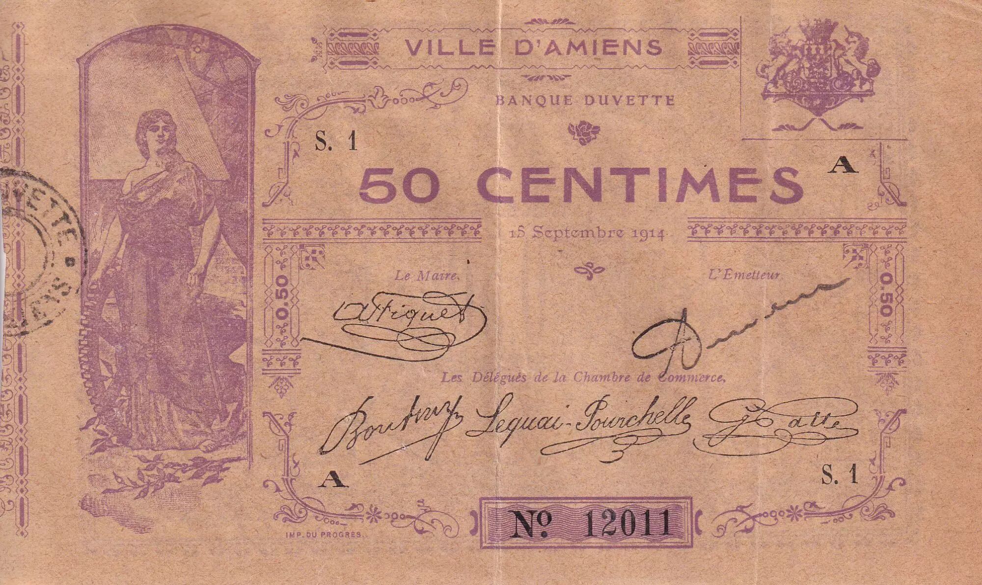 Banknote France 50 Centimes - Chambre de Commerce d'Amiens - 1914 - Serial S.1 - P.7-1