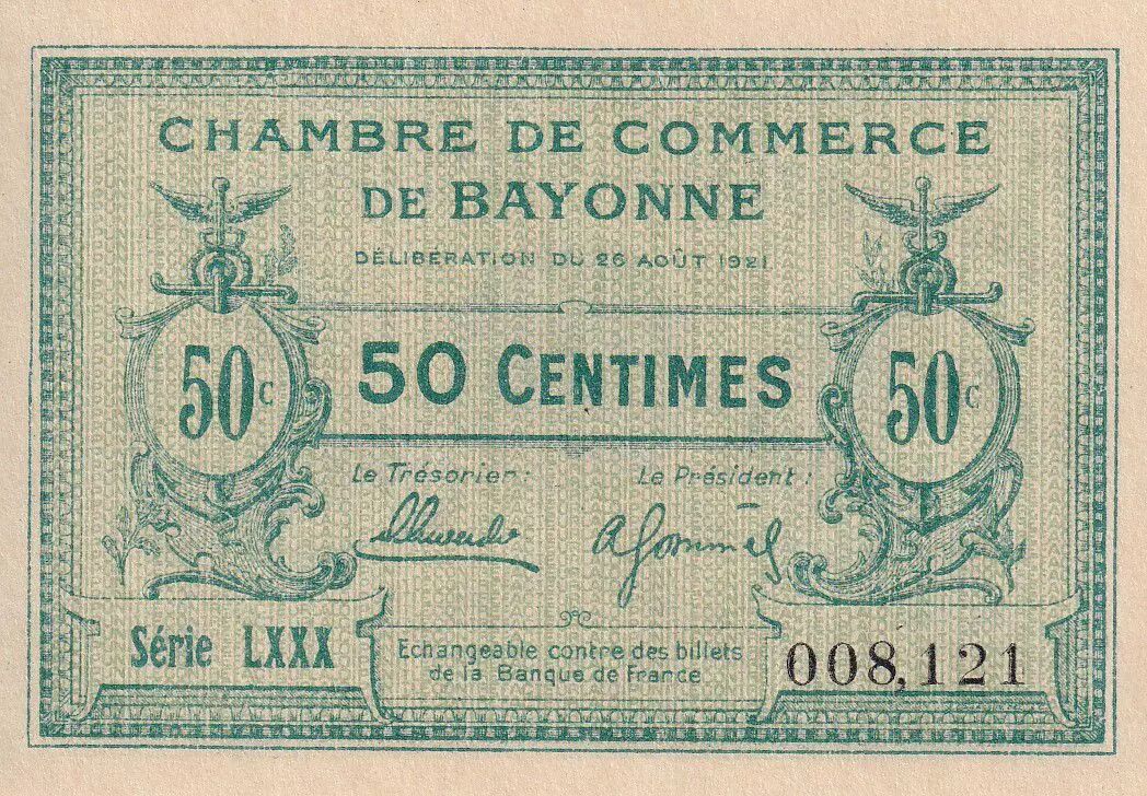 Home > > France 50 Centimes - Chambre de commerce de Bayonne - 1921 - Serial LXXX (80) - P.21-69