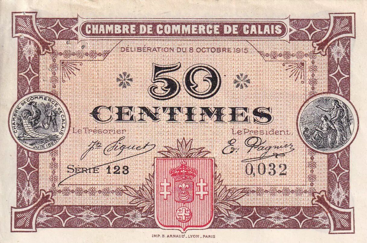 Banknote France 50 Centimes - Chambre de commerce de Calais - 1915 - Serial 123 - P.36-7