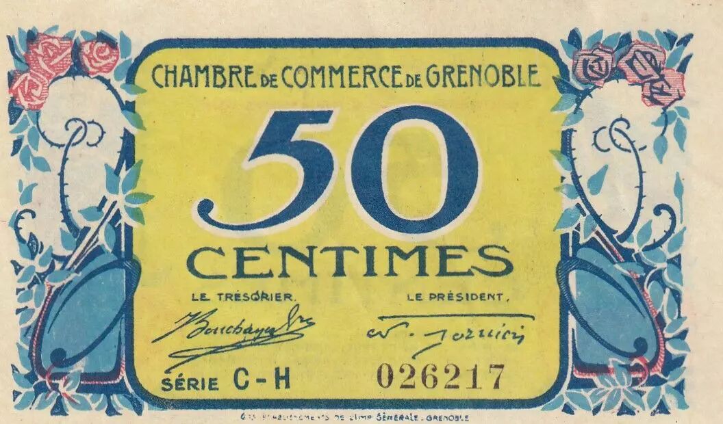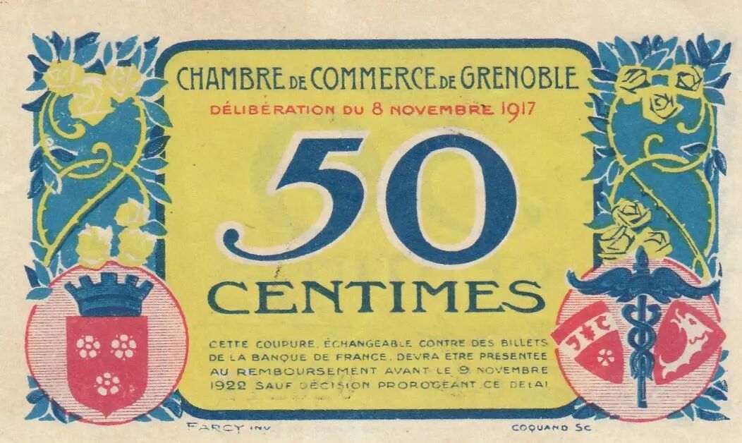 Accueil > Billets Français > Billets de Nécessités (1789-1945) > 1914-1925 Chambre de Commerce > France 50 Centimes - Chambre de Commerce de Grenoble - 08-11-1917 - Série C-H