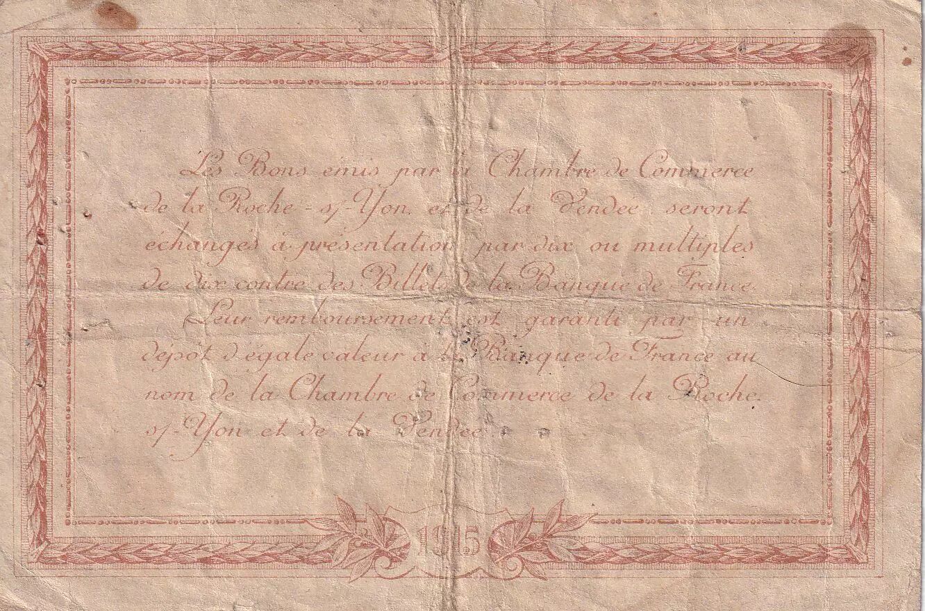 Banknote France 50 Centimes - Chambre de commerce de la Roche-sur-Yon - Serial H- P.65-14