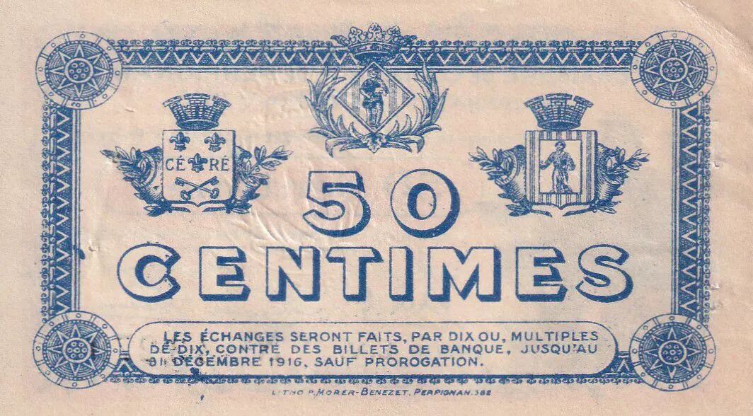 Accueil > Archivage > France 50 Centimes - Chambre de commerce de Perpignan - 1915 - Série L.V. - P.100-9