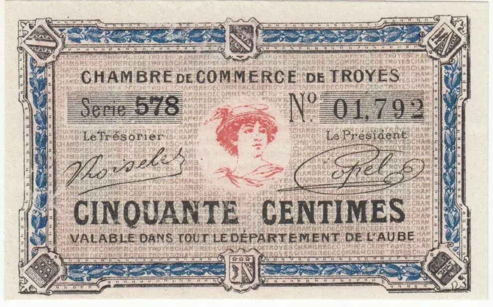 Accueil > Billets Français > Billets de Nécessités (1789-1945) > 1914-1925 Chambre de Commerce > France 50 Centimes - Chambre de Commerce de Troyes 1918 - p.Neuf