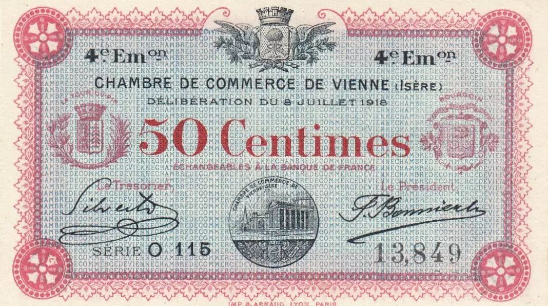 Accueil > Billets Français > Billets de Nécessités (1789-1945) > 1914-1925 Chambre de Commerce > France 50 Centimes - Chambre de Commerce de Vienne - 08-07-1918 - Série O.115