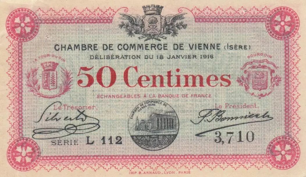 Accueil > Billets Français > Billets de Nécessités (1789-1945) > 1914-1925 Chambre de Commerce > France 50 Centimes - Chambre de Commerce de Vienne - 18-01-1916 - Série L.112