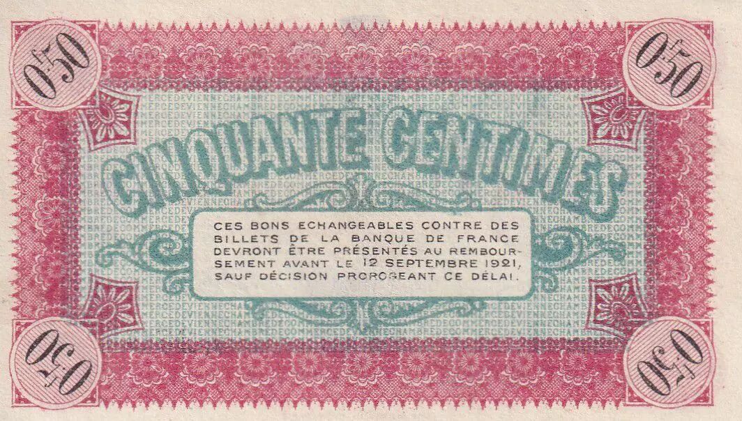 Home > > France 50 Centimes - Chambre de commerce de Vienne - 1916 - Serial N 114 - P.128-15