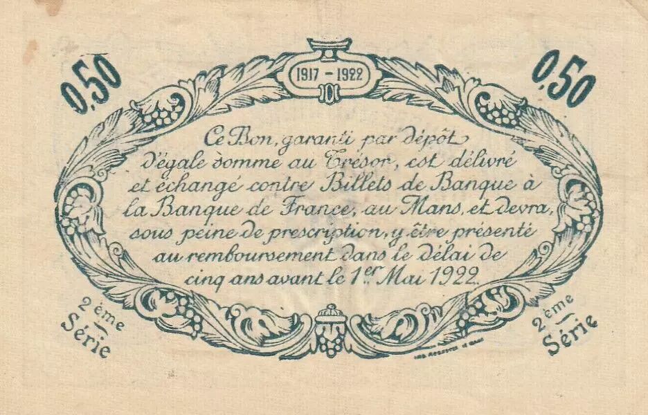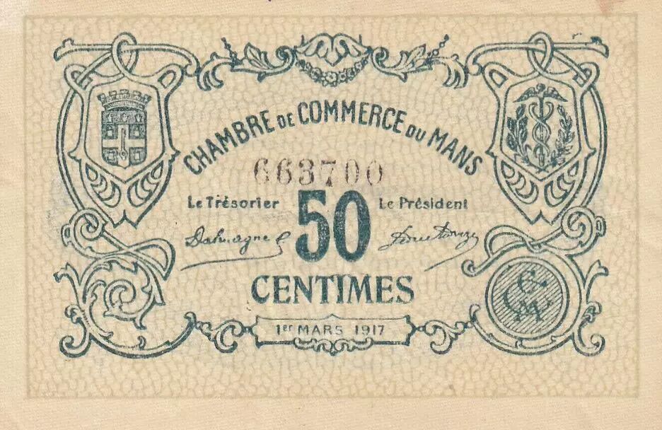 Accueil > Billets Français > Billets de Nécessités (1789-1945) > 1914-1925 Chambre de Commerce > France 50 Centimes - Chambre de commerce du Mans - 01-03-1917 - Série 2