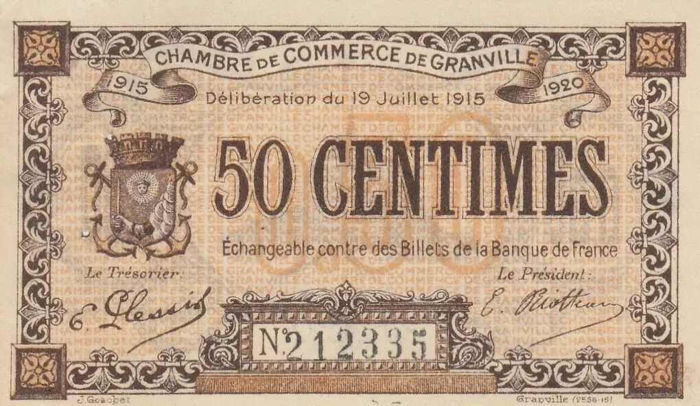 Billet France 50 Centimes - Chambre de Commerce - Granville - 19-07-1915 - Série 212