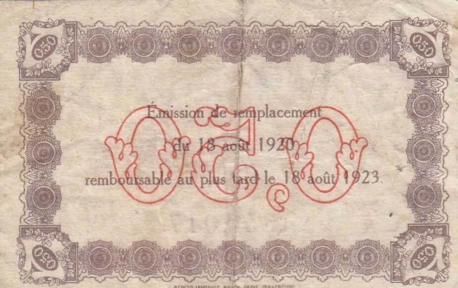 Ce billet a une valeur nominale de 50 centimes. Il a été émis en France en 1920.