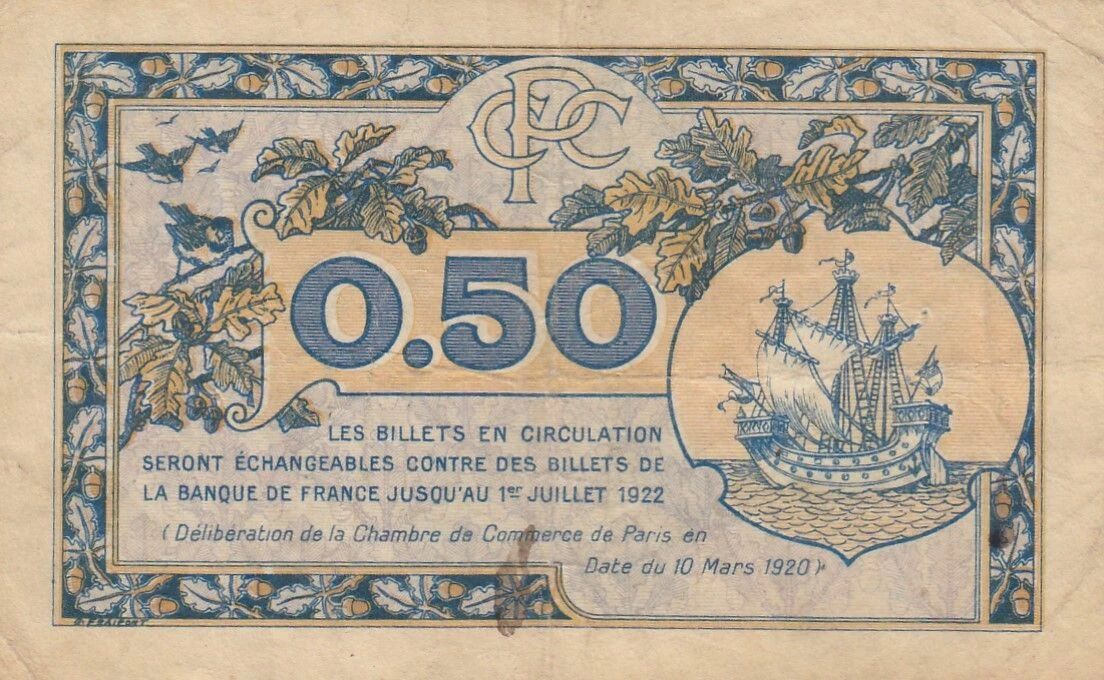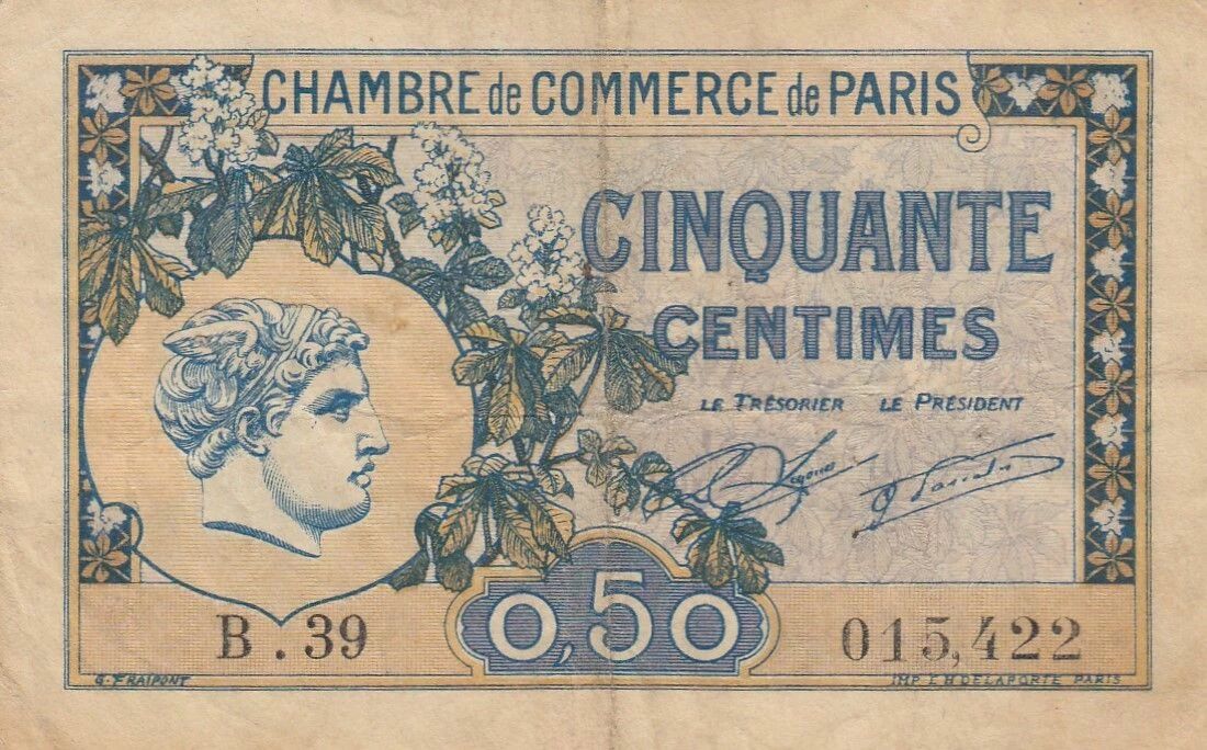 Accueil > Billets Français > Billets de Nécessités (1789-1945) > 1914-1925 Chambre de Commerce > France 50 Centimes - Chambre de commerce - Paris - 1920 - Série B.39