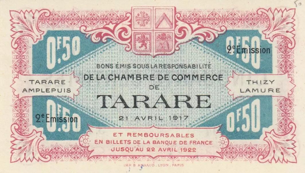 Billet France 50 Centimes - Chambre de commerce - Tarare - 21-04-1917 - 2ème émission