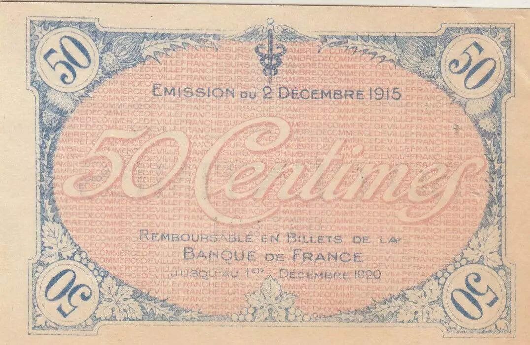Billet France 50 Centimes - Chambre de Commerce - VilleFranche-Sur-Saône - 02-12-1915 - Numéro 037
