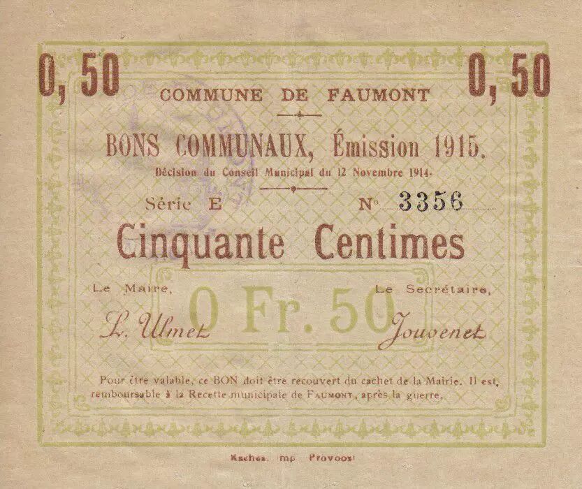 Banknote France 50 Centimes Faumont City - 1915