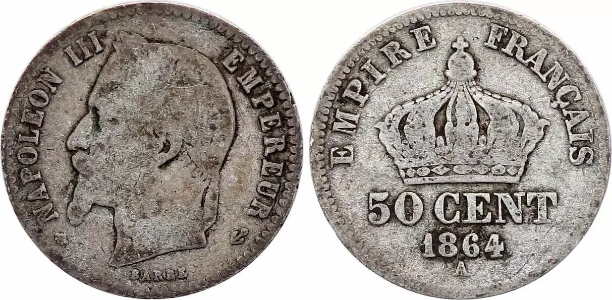 Pièce France 50 Centimes Francs Napoléon III 1864 A Paris - Argent