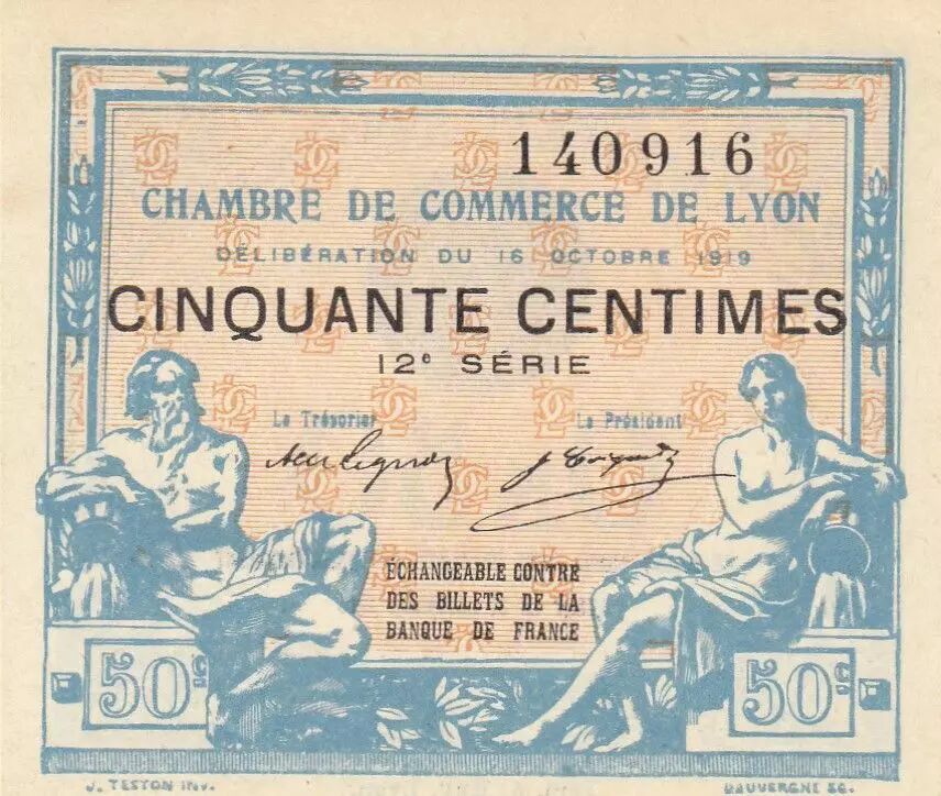 Accueil > Billets Français > Billets de Nécessités (1789-1945) > 1914-1925 Chambre de Commerce > France 50 Centimes - Lyon - Chambre de Commerce - 16-10-1919 - Douxième Série