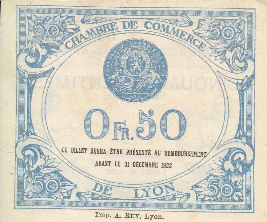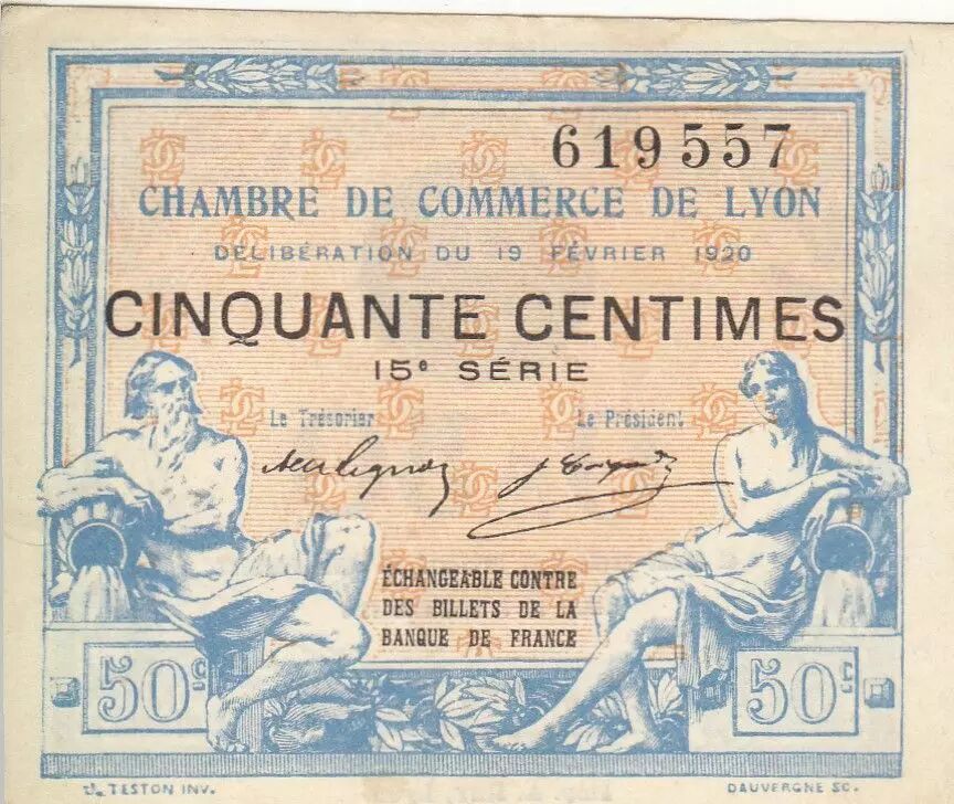 Accueil > Billets Français > Billets de Nécessités (1789-1945) > 1914-1925 Chambre de Commerce > France 50 Centimes - Lyon - Chambre de Commerce - 19-02-1920 - Quinzième Série
