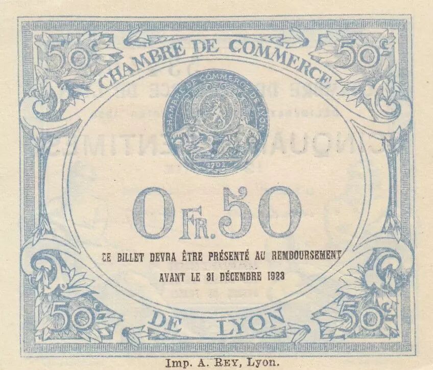 Accueil > Billets Français > Billets de Nécessités (1789-1945) > 1914-1925 Chambre de Commerce > France 50 Centimes - Lyon - Chambre de Commerce - 19-02-1920 - Treizième Série