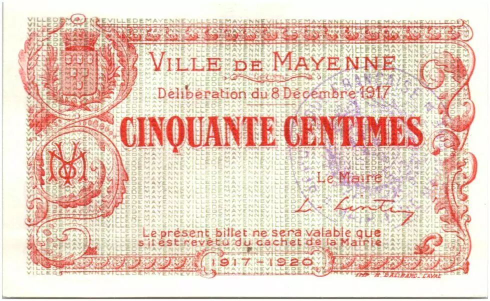 Billet France 50 Centimes Mayenne Ville - 1917