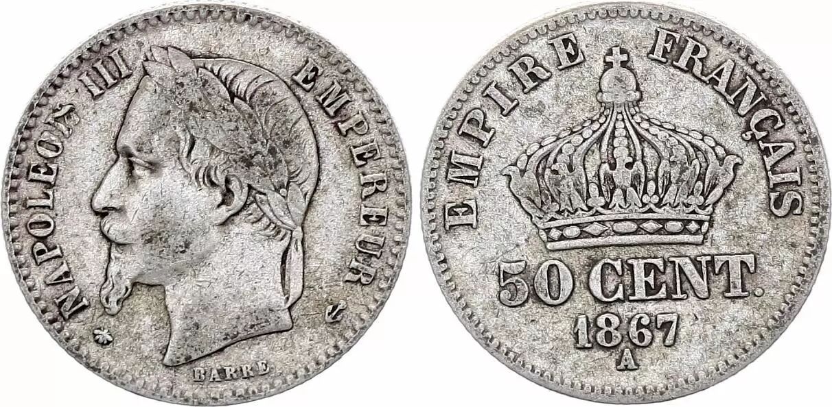 Accueil > Archivage > archivage-Monnaies françaises (470 à 2002) > France 50 Centimes Napoleon III - 1867 A Paris - Argent