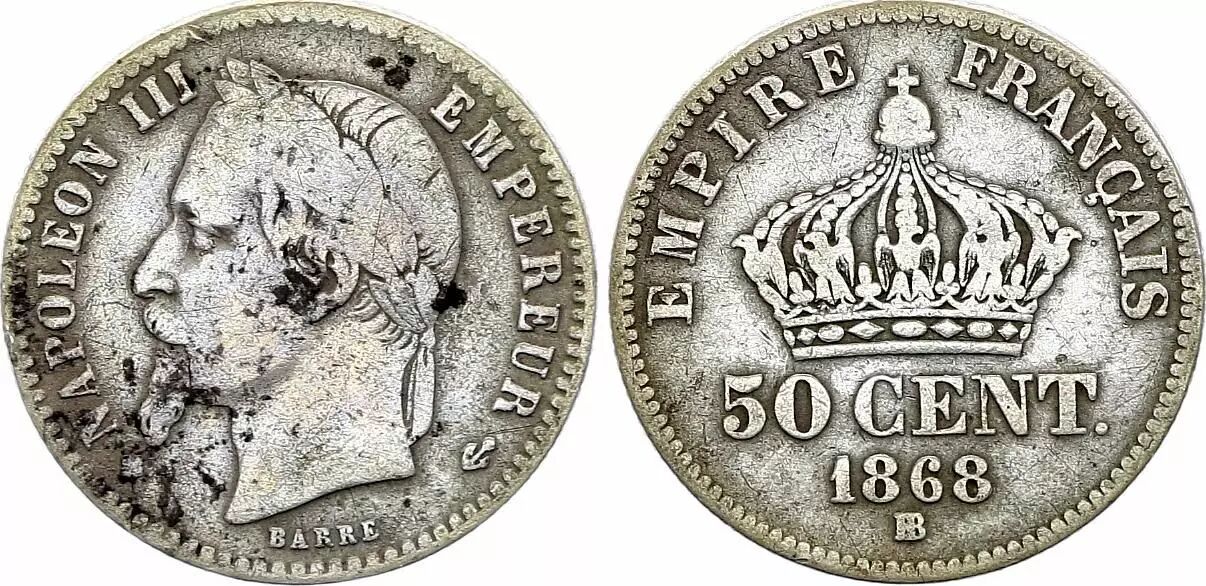 Pièce France 50 Centimes Napoleon III - 1868 BB Strasbourg - Argent