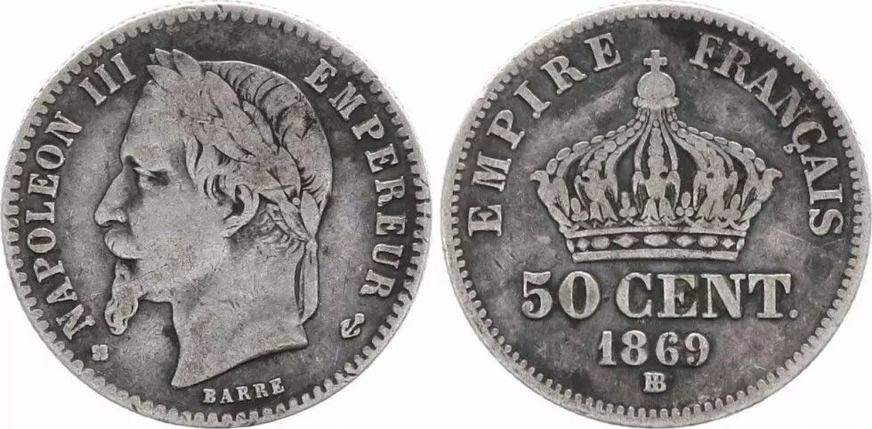 Accueil > Archivage > France 50 Centimes Napoléon III - Tête laurée 1869 BB Strasbourg