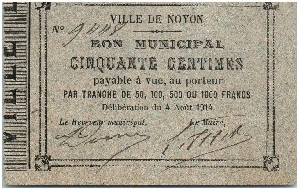 Banknote France 50 Centimes Noyon City - 1914