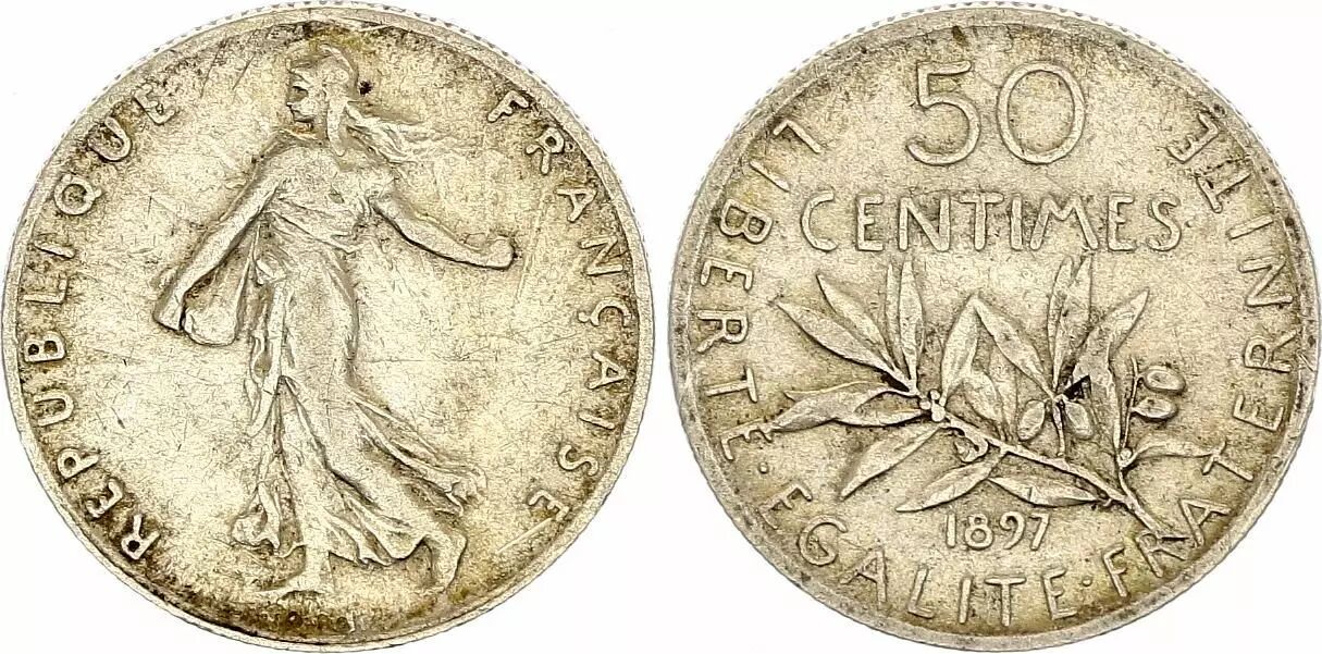Pièce France 50 Centimes Semeuse - 1897 - Argent